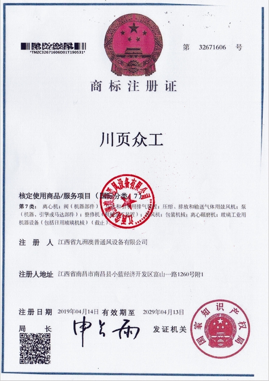 • 商標(biāo)注冊(cè)證(川頁眾工